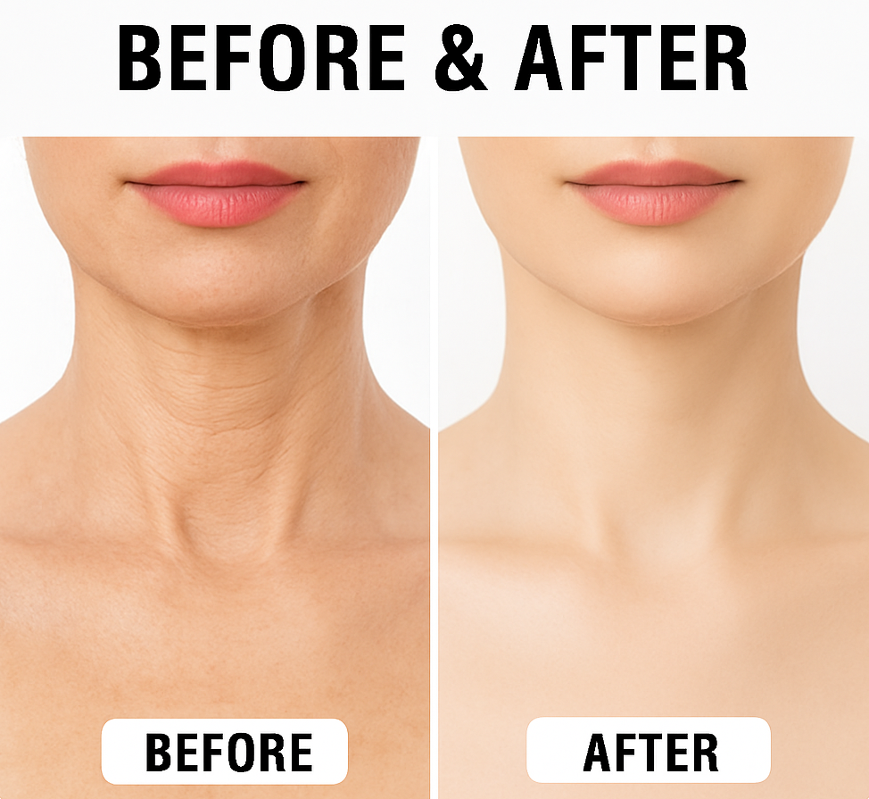 It is formulated to target neck wrinkles, chest lines, sagging skin, and jawline definition, helping create a firmer and smoother appearance with regular use.